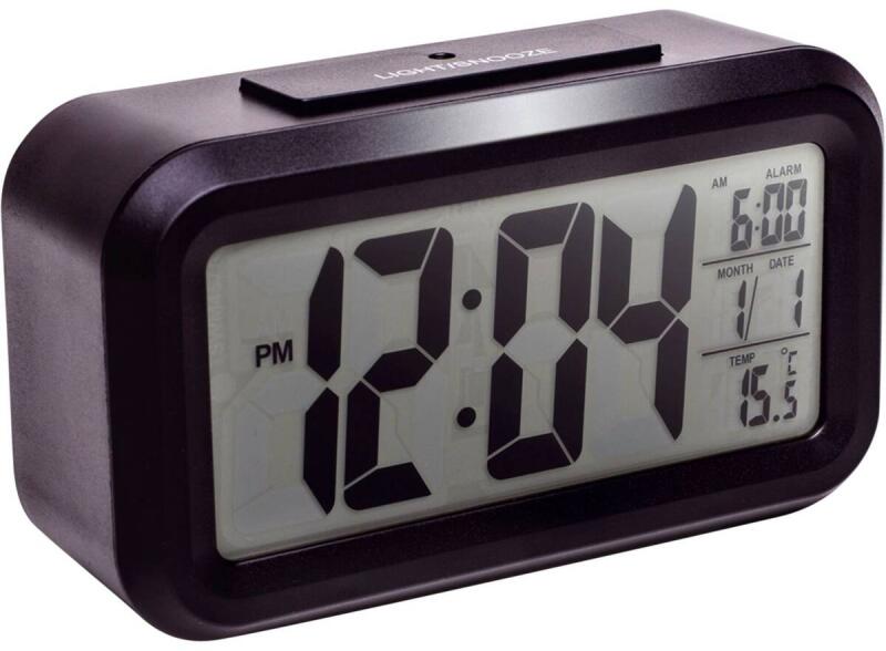 Nagy LCD kijelzőKiváló minőségű kvarc szerkezetHőmérséklet kijelzés °C / °F mértékegységben12/24 órás kijelző2 ébresztő szundi funkcióvalIdőzóna beállításaBeépített fényérzékelőFehér háttérvilágításNaptár dátummal és hónappal3 x AAA elem (nem tartozék)
